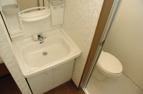 各部屋共通設備:個別エアコン(冷暖)・洗濯機・冷蔵庫・テレビ・ビデオデッキ・電話・(各階に乾燥機を設置・無料)キッチン・ガスコンロ・電子レンジ・炊飯器・電気ポット